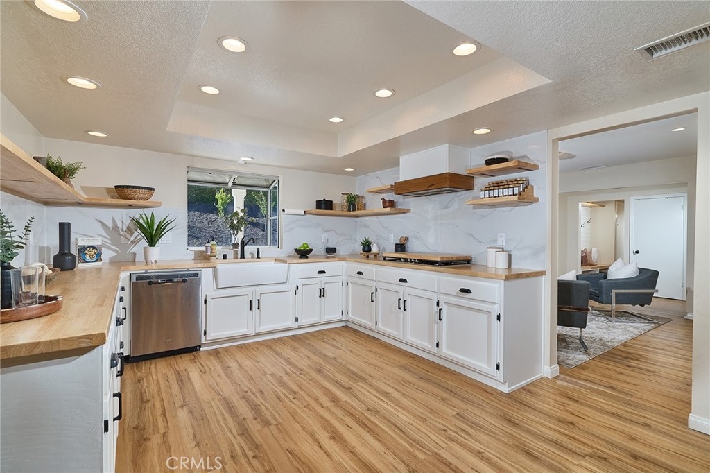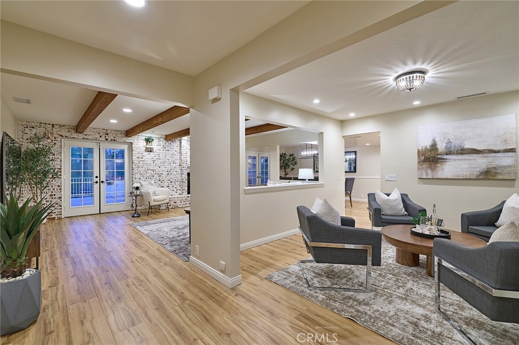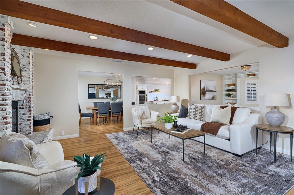 Best priced home nestled in the coveted Meadowview community! This exquisitely renovated ranch-style retreat captures the perfect balance of rustic elegance and modern sophistication. Set on a spacious lot with sweeping views, the home is a true entertainer’s dream where timeless charm meets designer style. From the moment you step inside, you’re welcomed by warm, natural tones, rich textures, and architectural details. The expansive open-concept layout is thoughtfully designed to flow effortlessly, offering both comfort and sophistication. The living room stuns with dramatic exposed beams and a striking brick fireplace creating a cozy yet elevated gathering space. The adjoining dining area is equally impressive and opens to a recently remodeled chef’s kitchen, featuring high-end finishes, sleek cabinetry, and premium appliances.