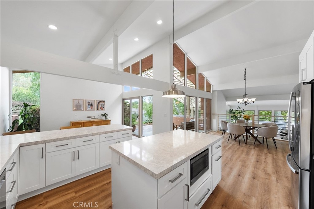Welcome to this stunning newly remodeled mid-century modern gem located in the highly desirable Meadowview community. This 4-bedroom, 2-bathroom home blends timeless architectural style with modern updates, offering the perfect balance of charm and sophistication. Nestled on a spacious half-acre lot with mature fruit trees, including pomegranate, white nectarine, and various citrus trees, along with a serene meadow backdrop, the property invites you to enjoy both privacy and wide-open views with direct access to the meadow as well as close proximity to the clubhouse, pools, and sports courts. Step inside to find an open, light-filled floor plan featuring stylish modern finishes, upgraded fixtures, and a seamless indoor-outdoor flow. The home also boasts a 550 sq. ft. detached casita complete with a full bath and kitchenette, ideal for multi-generational living, guests, or a private home office. With its generous lot, remodeled interior, and sought-after location in Meadowview, this property is a true rare find.